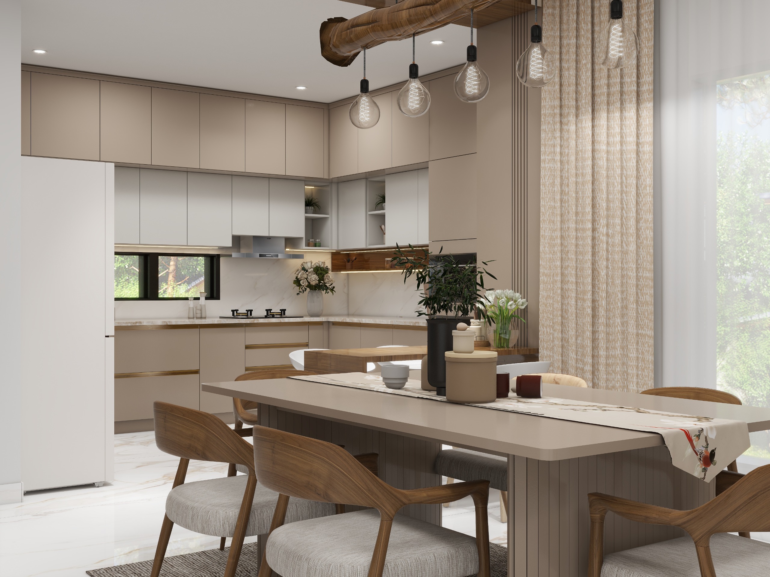 Countertops that look stone (not necessarily stone) High-quality quartz or stone-look tiles often outperform marble in Indian kitchens.